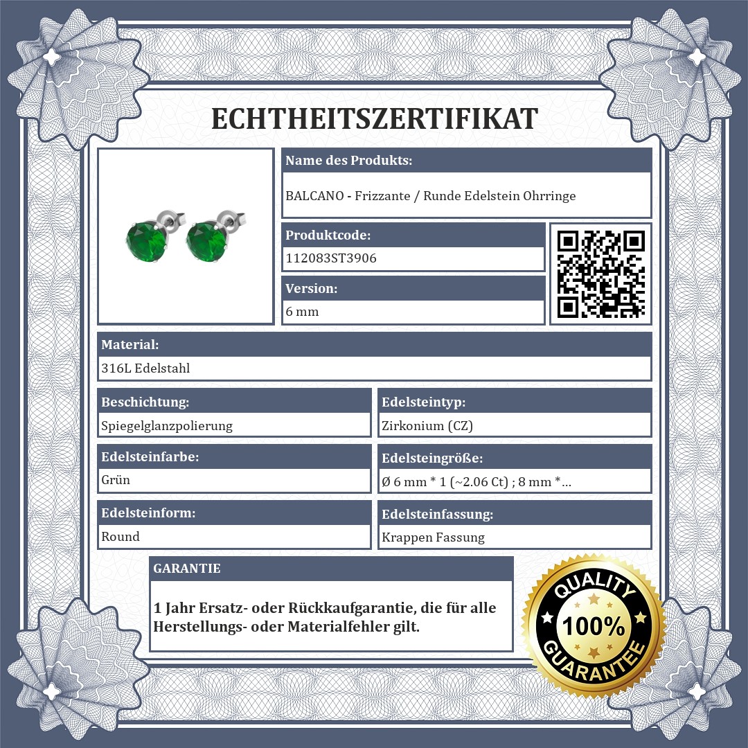 Grüne Farbe Ohrringe mit runden Zirkonia Edelstein in den Größen 6 mm und 8 mm. Schmuck aus medizinischem 316L-Edelstahl, der sich aufgrund seines Materials nicht abnutzt oder verfärbt.