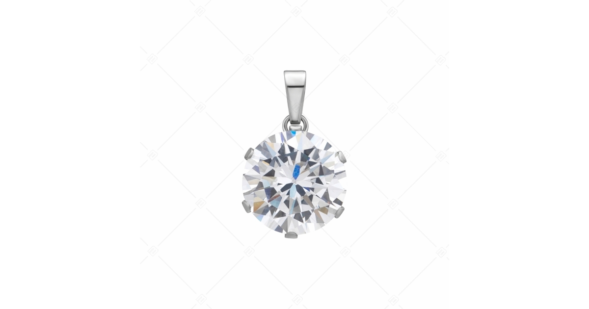 Klarer, runder Zirkonia Edelstein Anhänger. Schmuck aus medizinischem 316L-Edelstahl, der sich aufgrund seines Materials nicht abnutzt oder verfärbt.
