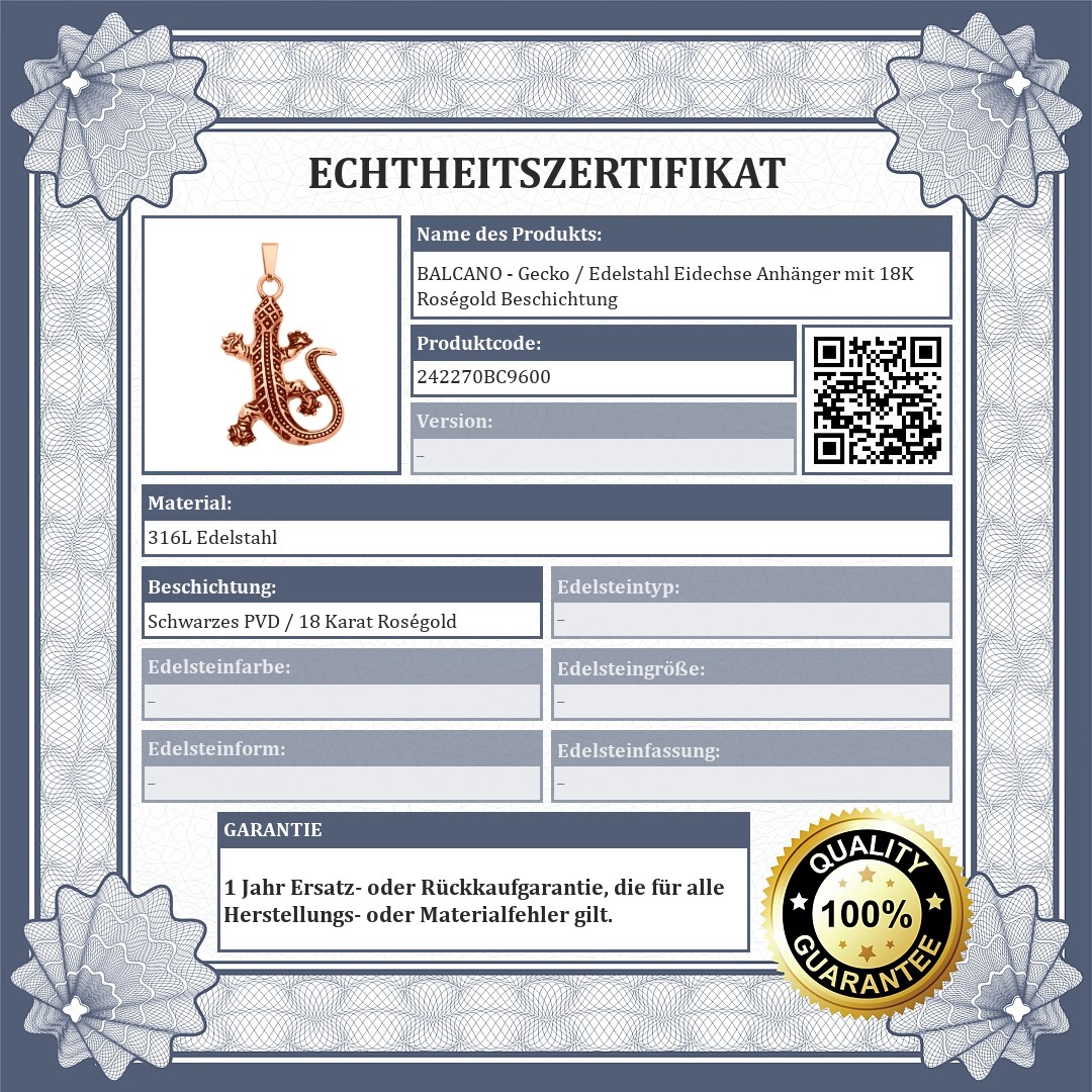 BALCANO - Gecko / Edelstahl Eidechse Anhänger mit 18K Roségold Beschichtung