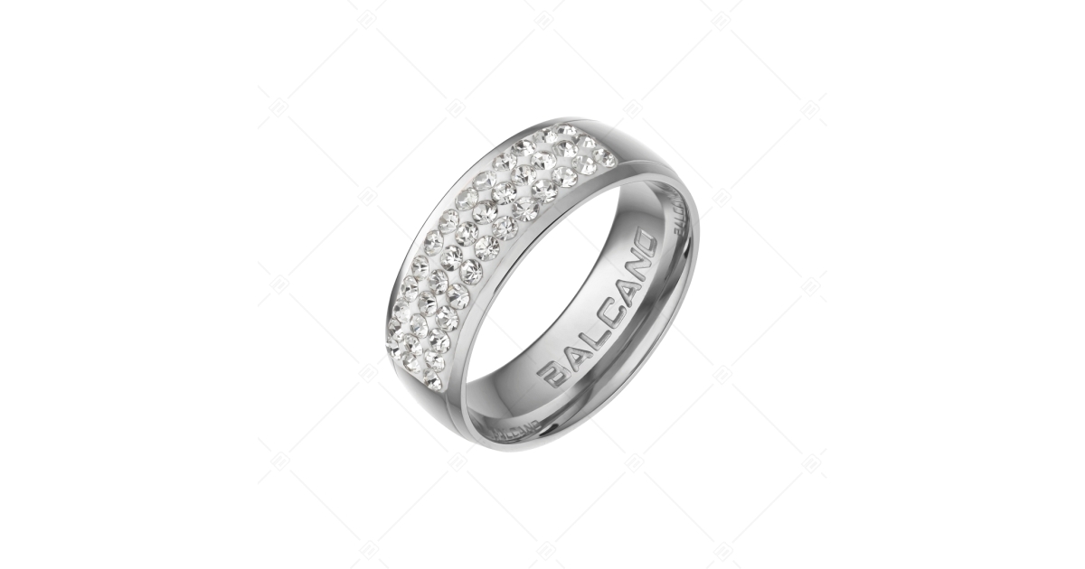 BALCANO - Giulia / Hochglanzpolierter Edelstahl Ring mit Glänzenden Kristallen
