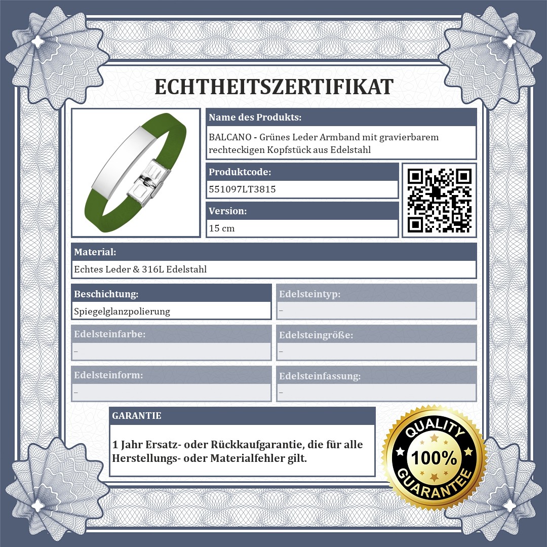 BALCANO - Grünes Leder Armband mit gravierbarem rechteckigen Kopfstück aus Edelstahl