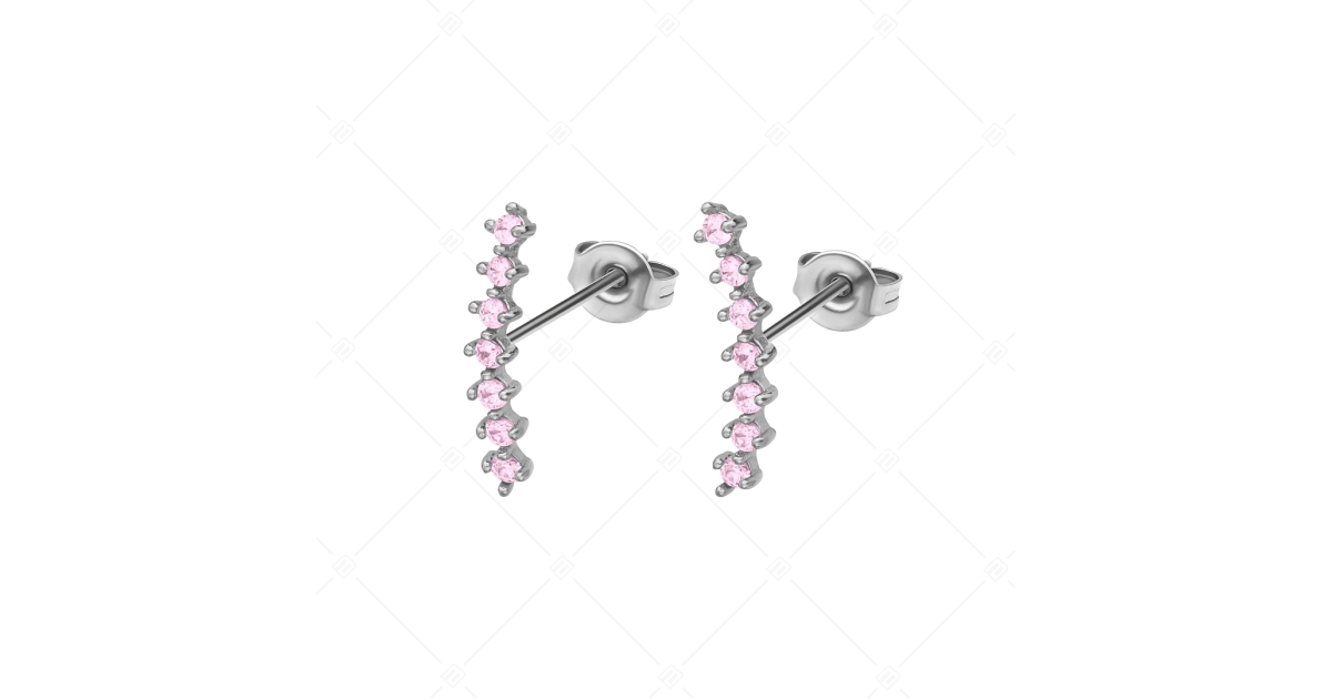 Wunderschöne, geschwungene Ohrstecker mit rosa Zirkoniasteinen besetzt. Antiallergischer Schmuck aus 316L-Edelstahl in medizinischer Qualität, hergestellt aus einem Material, das extrem langlebig für den täglichen Gebrauch ist.