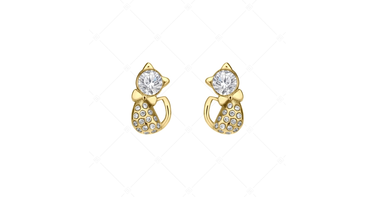 BALCANO - Kitten / Ohrstecker in Katzenform mit Zirkonia Edelsteinen und 18K Gold Beschichtung