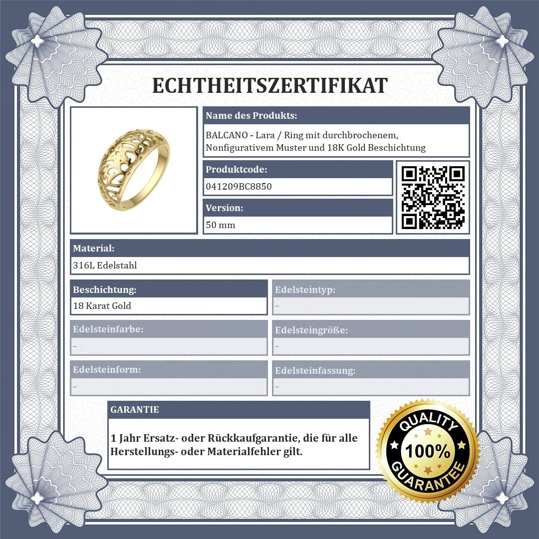 BALCANO - Lara / Ring mit durchbrochenem, Nonfigurativem Muster und 18K Gold Beschichtung
