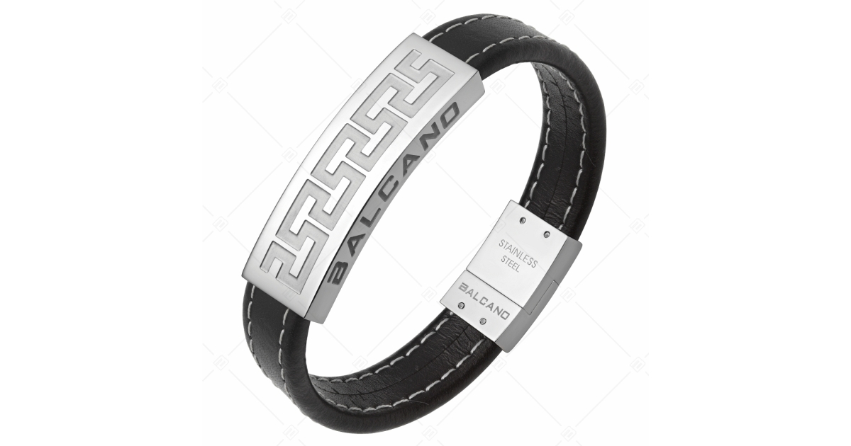 BALCANO - Lorenzo / Genähtes Rindsleder armband mit griechisch gemustertem Edelstahlkopf