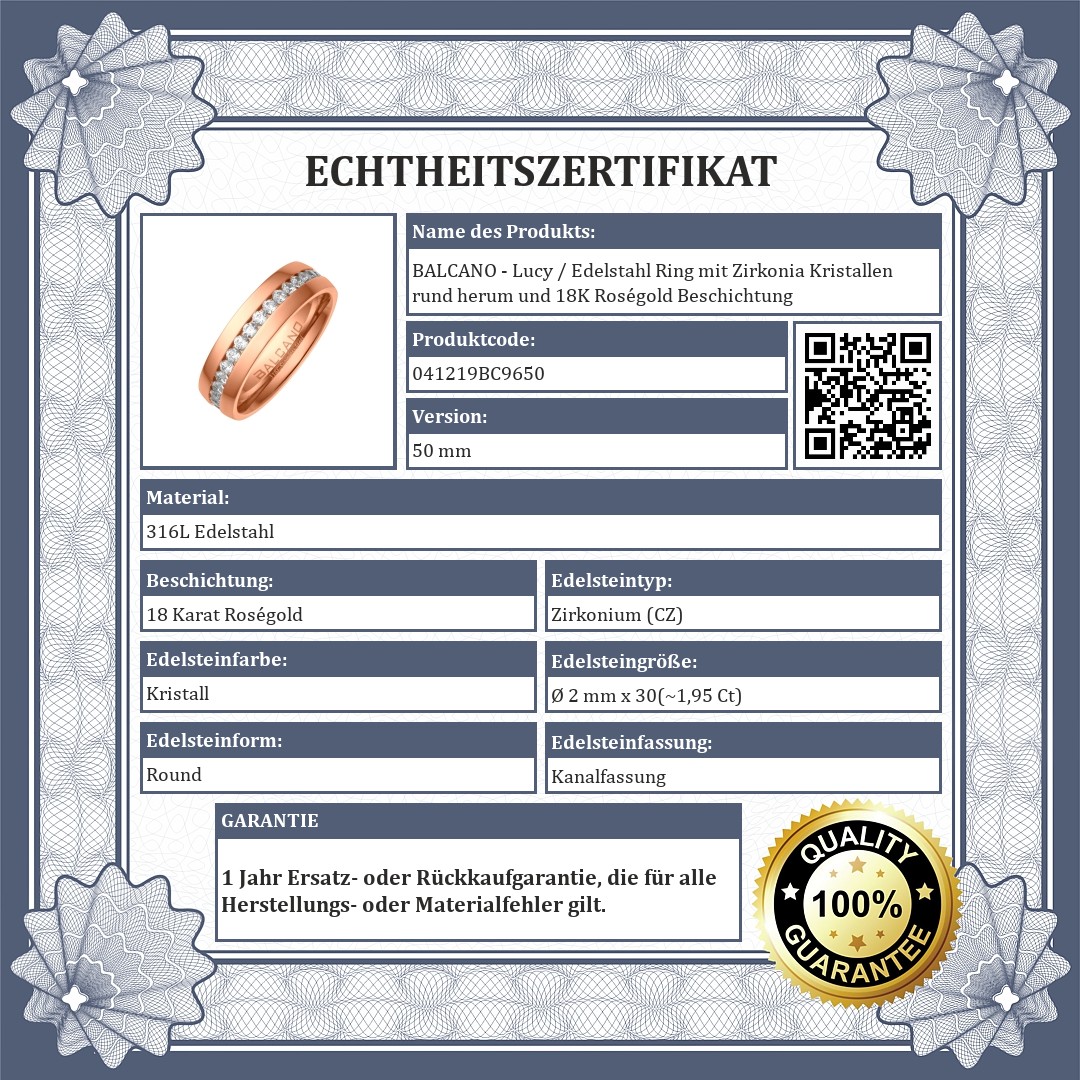 BALCANO - Lucy / Edelstahl Ring mit Zirkonia Kristallen rund herum und 18K Roségold Beschichtung