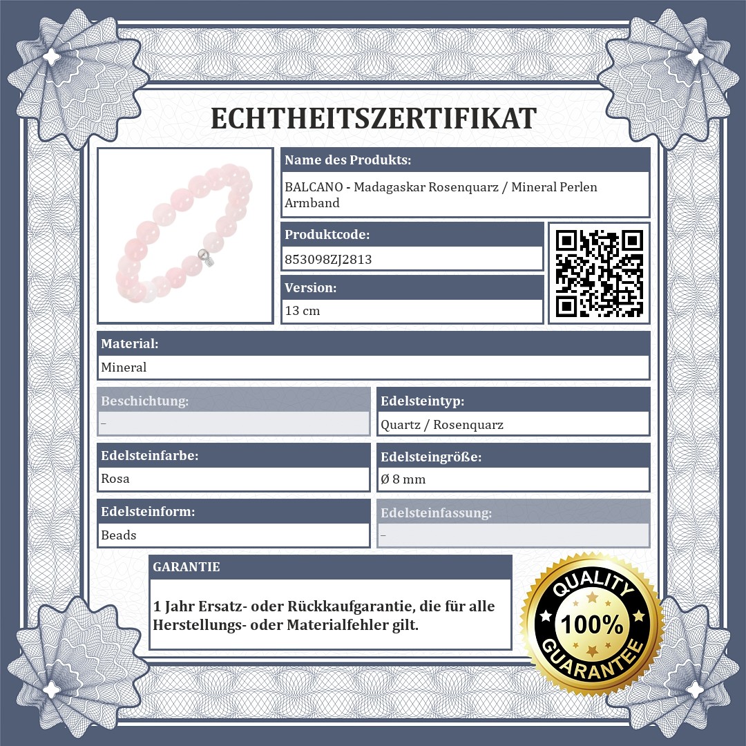 BALCANO - Madagaskar Rosenquarz / Mineral Perlen Armband