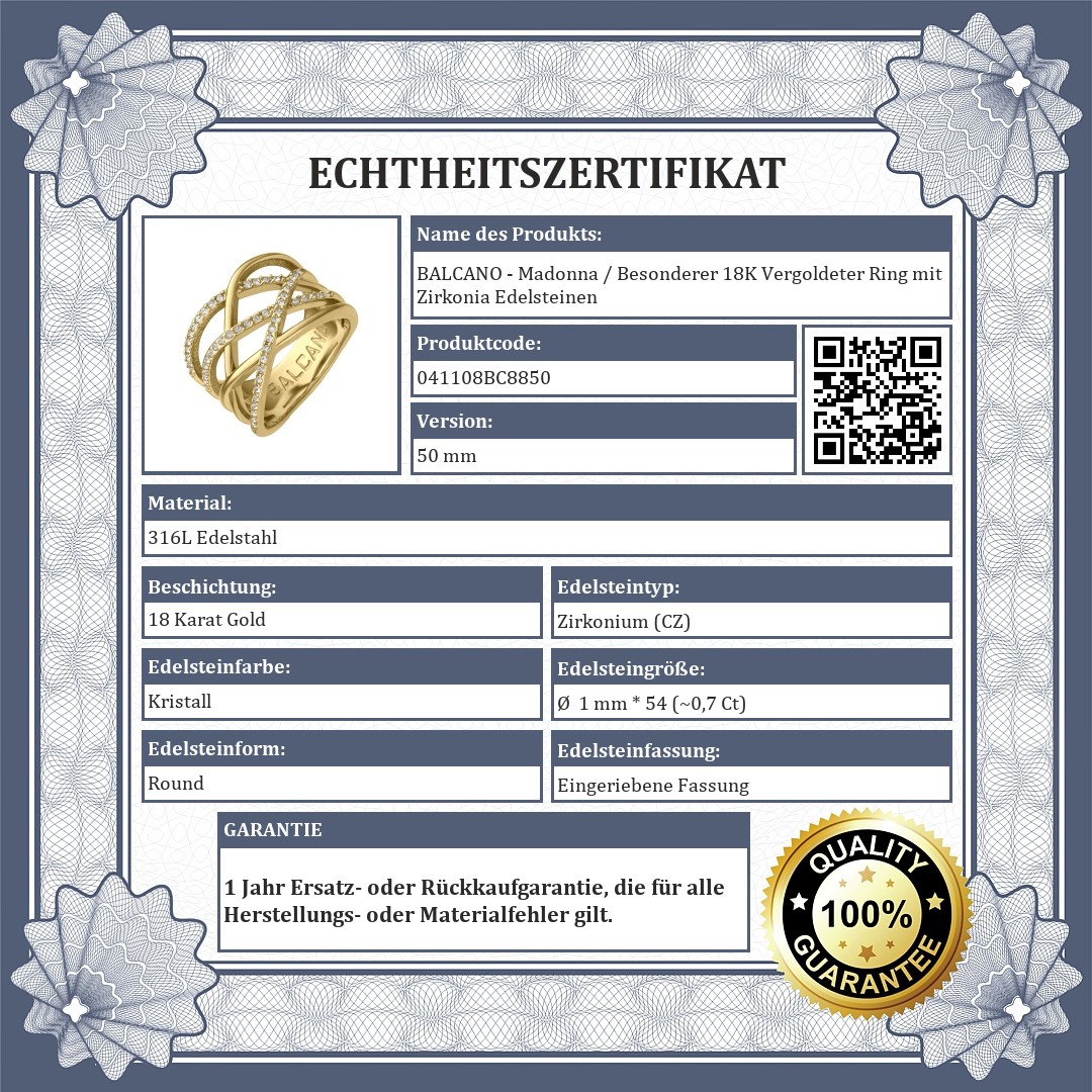 BALCANO - Madonna / Besonderer 18K Vergoldeter Ring mit Zirkonia Edelsteinen