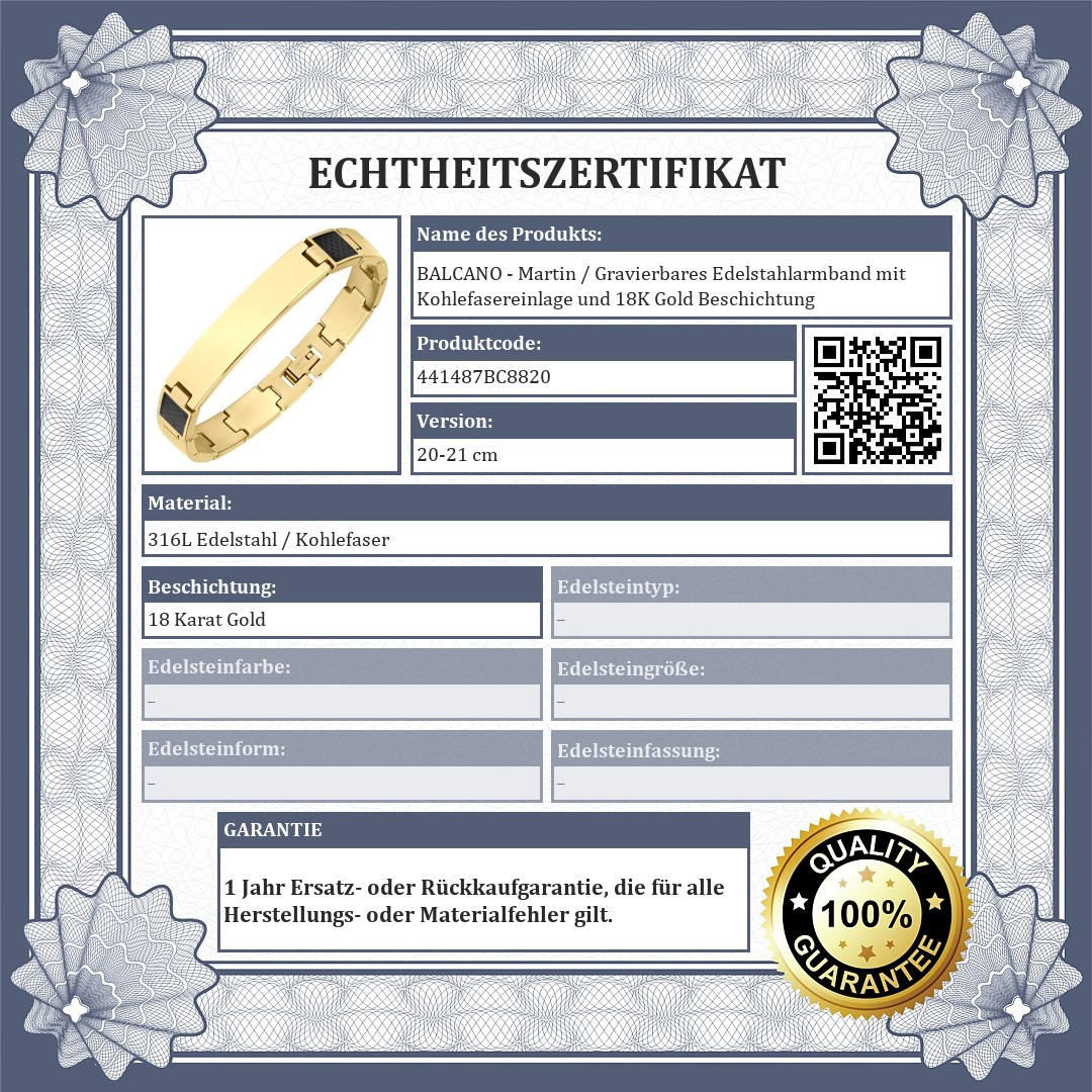 BALCANO - Martin / Gravierbares Edelstahlarmband mit Kohlefasereinlage und 18K Gold Beschichtung
