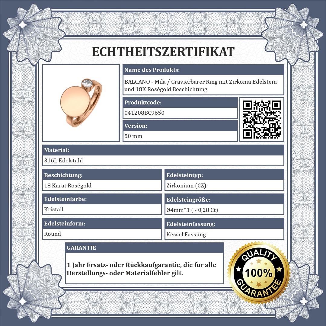 BALCANO - Mila / Gravierbarer Ring mit Zirkonia Edelstein und 18K Roségold Beschichtung