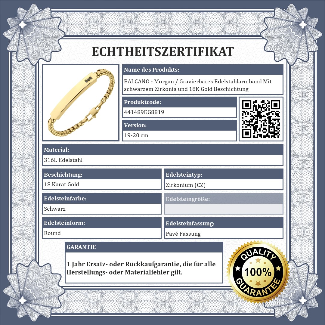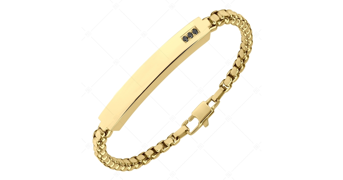 BALCANO - Morgan / Gravierbares Edelstahlarmband Mit schwarzem Zirkonia und 18K Gold Beschichtung