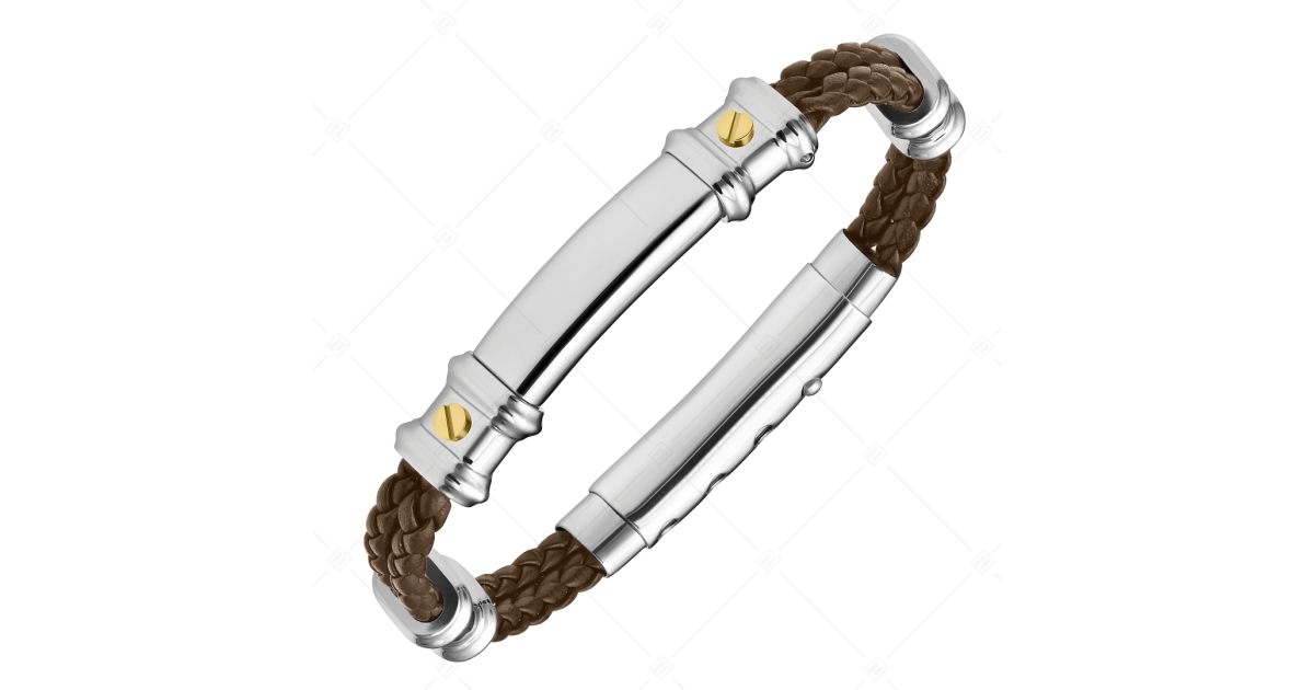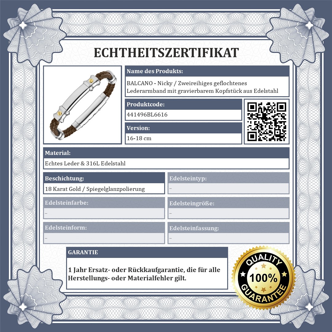BALCANO - Nicky / Zweireihiges geflochtenes Lederarmband mit gravierbarem Kopfstück aus Edelstahl