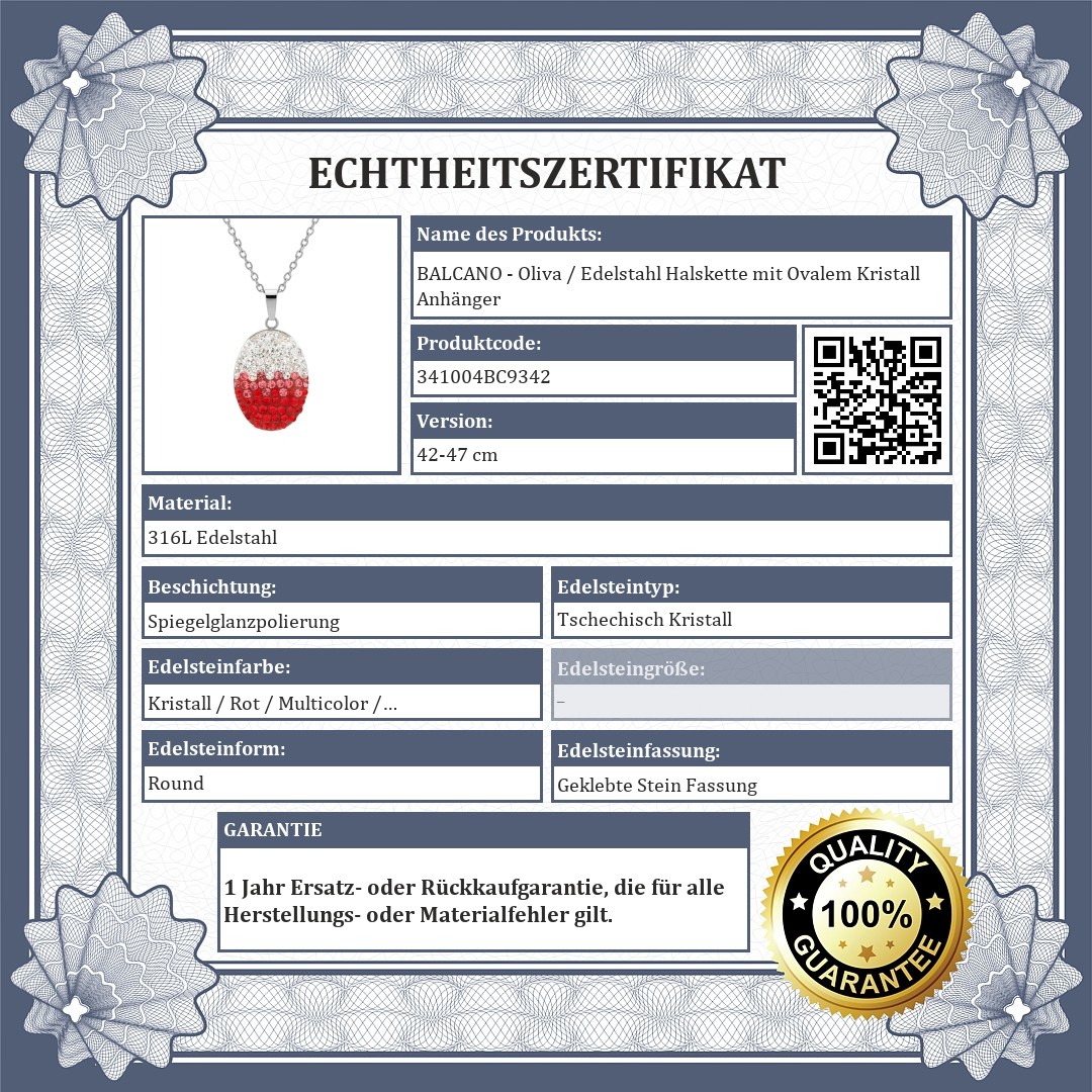 BALCANO - Oliva / Edelstahl Halskette mit Ovalem Kristall Anhänger