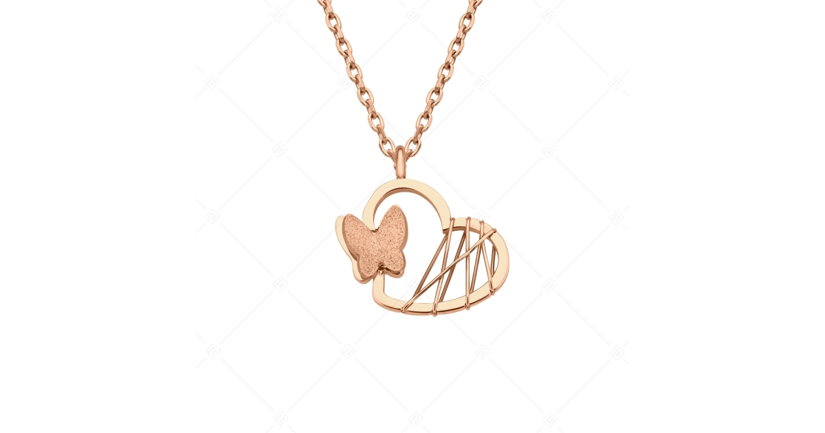 BALCANO - Papillon / Herz und Schmetterling Edelstahl Anhänger mit Kette, 18K rosévergoldet