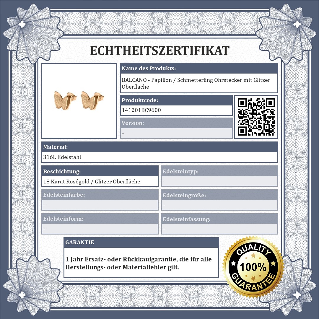 BALCANO - Papillon / Schmetterling Ohrstecker mit Glitzer Oberfläche