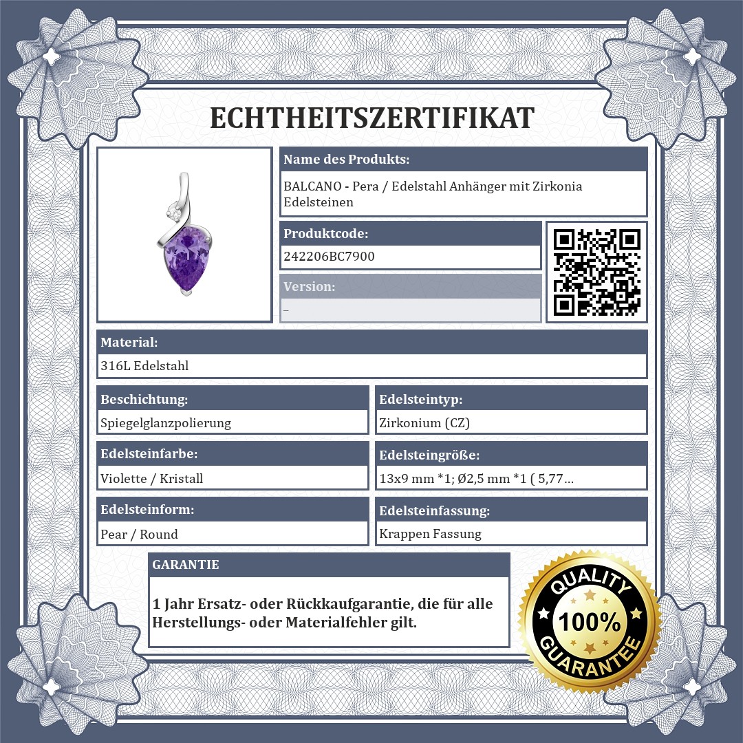 BALCANO - Pera / Edelstahl Anhänger mit Zirkonia Edelsteinen