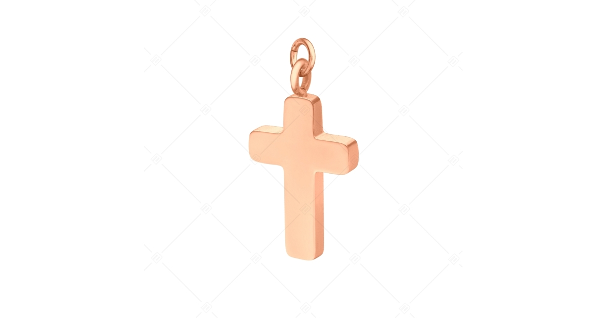 Kleiner Kreuzanhänger 18K rosévergoldet. Hochwertiger, antiallergischer Schmuck aus 316L-Edelstahl mit erhöhter Verschleißfestigkeit.