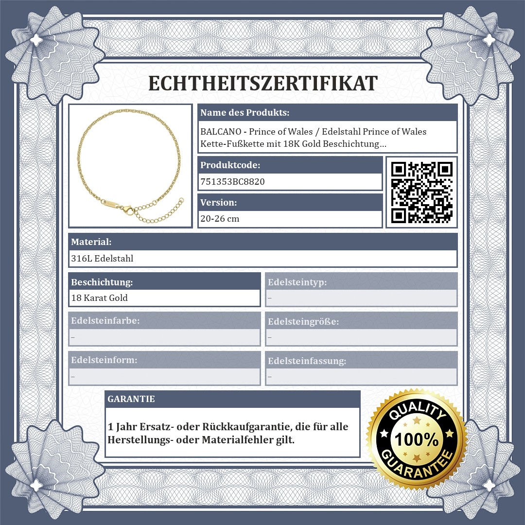 BALCANO - Prince of Wales / Edelstahl Prince of Wales Kette-Fußkette mit 18K Gold Beschichtung - 2 mm