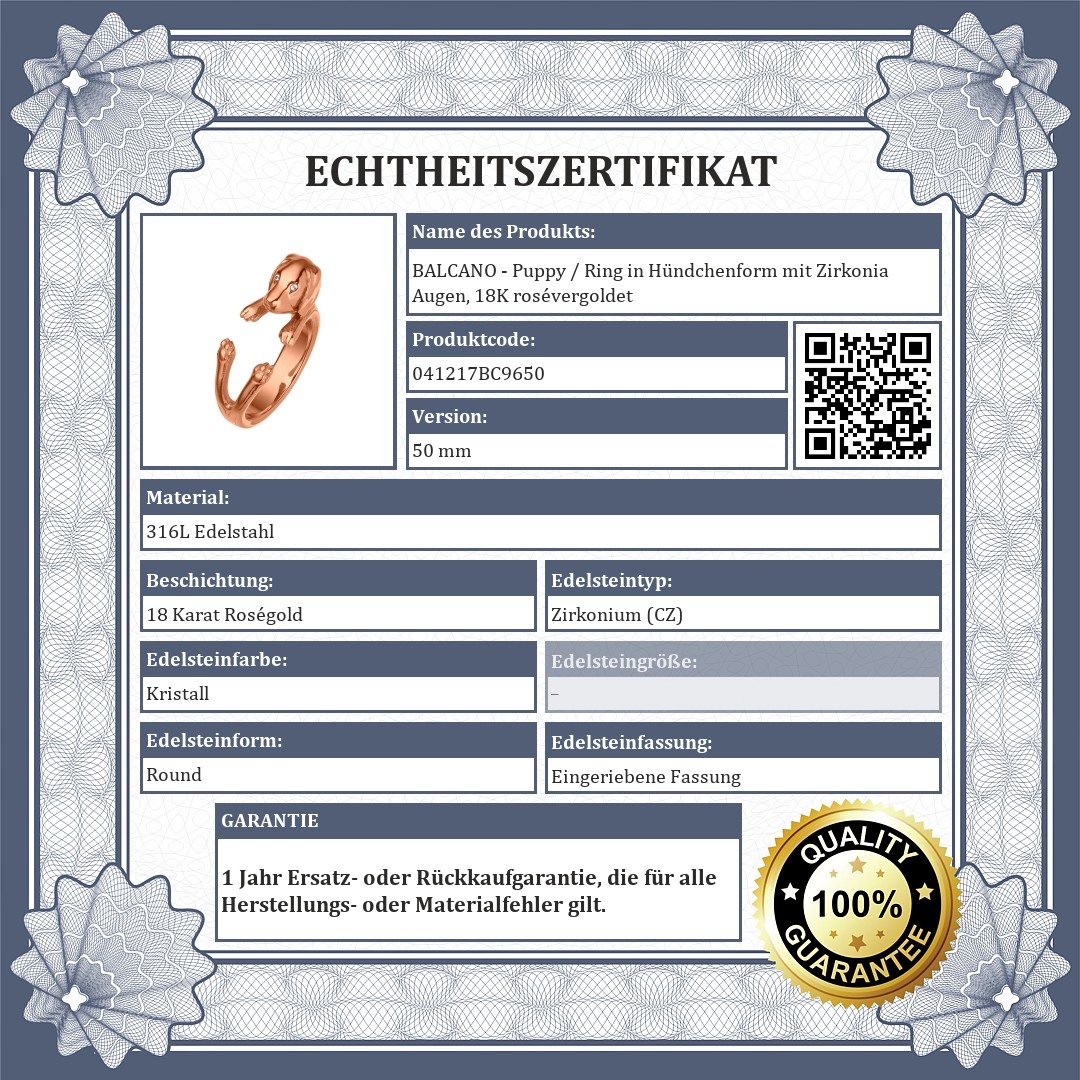 BALCANO - Puppy / Ring in Hündchenform mit Zirkonia Augen, 18K rosévergoldet