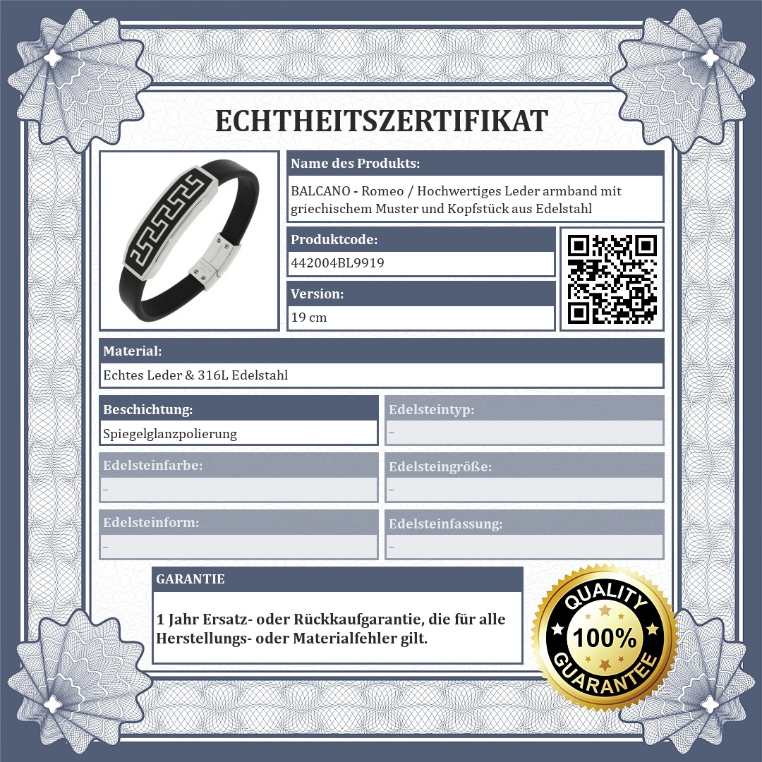 BALCANO - Romeo / Hochwertiges Leder armband mit griechischem Muster und Kopfstück aus Edelstahl