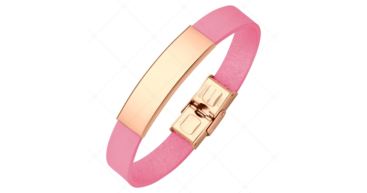 BALCANO - Rosa Leder Armband mit gravierbarem rechteckigen Kopfstück aus 18K rosévergoldetem Edelstahl