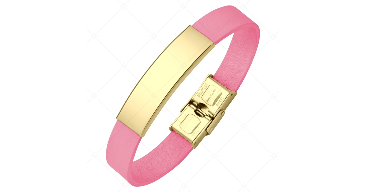 BALCANO - Rosafarbene Leder Armband mit gravierbarem rechteckigen Kopfstück aus 18K vergoldetem Edelstahl