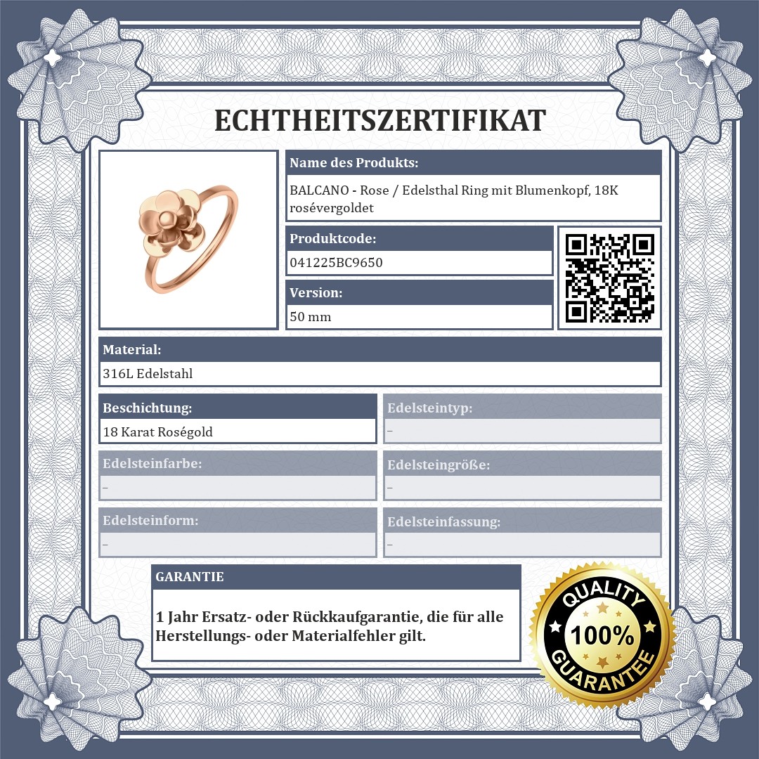 BALCANO - Rose / Edelsthal Ring mit Blumenkopf, 18K rosévergoldet