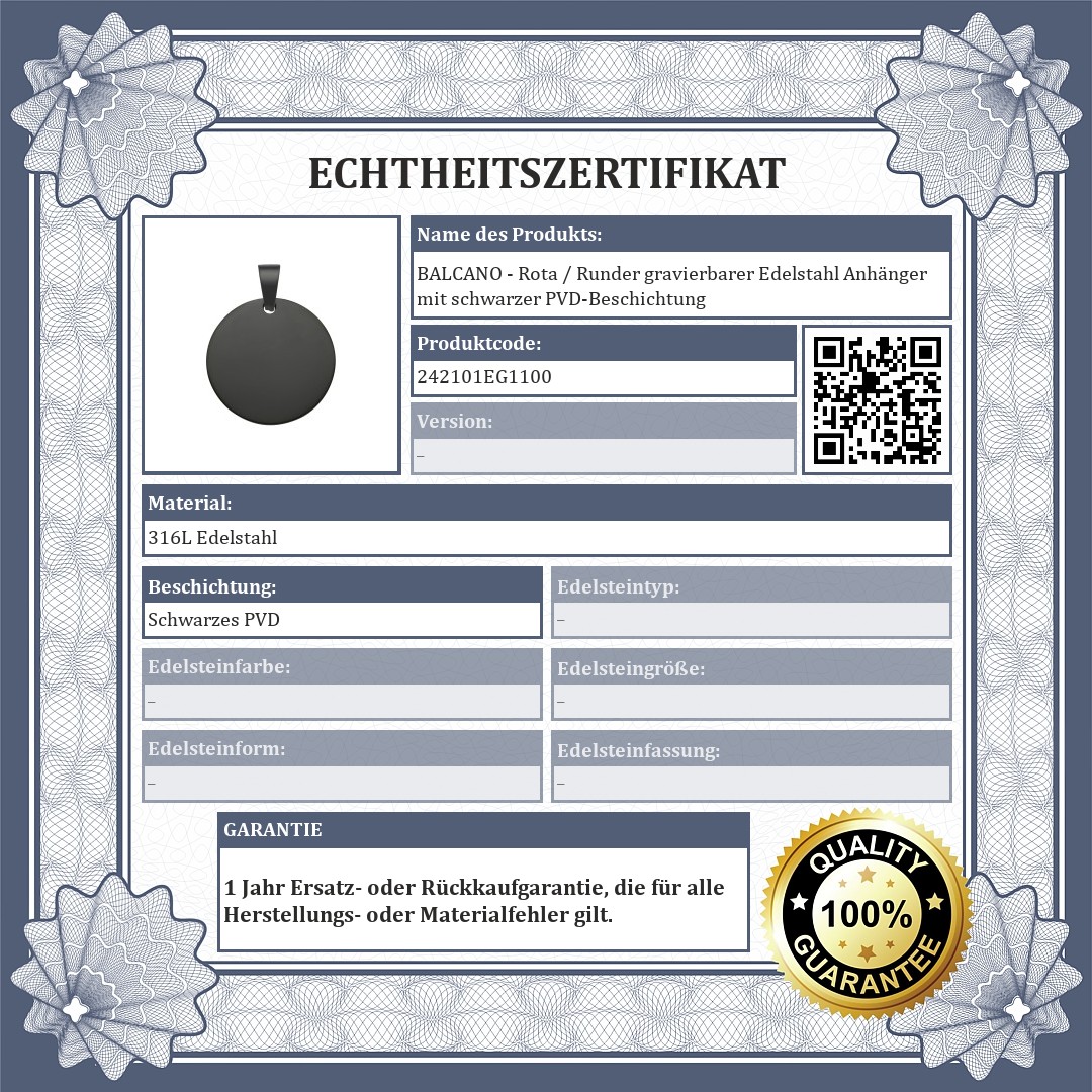 BALCANO - Rota / Runder gravierbarer Edelstahl Anhänger mit schwarzer PVD-Beschichtung