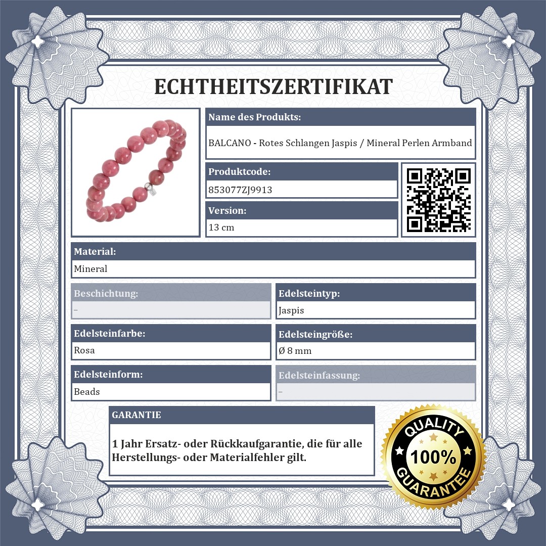 BALCANO - Rotes Schlangen Jaspis / Mineral Perlen Armband