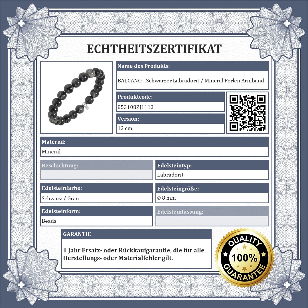 BALCANO - Schwarzer Labradorit / Mineral Perlen Armband