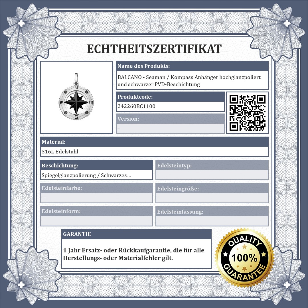 BALCANO - Seaman / Kompass Anhänger hochglanzpoliert und schwarzer PVD-Beschichtung