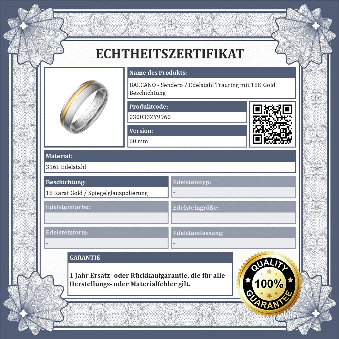 BALCANO - Sendero / Edelstahl Trauring mit 18K Gold Beschichtung