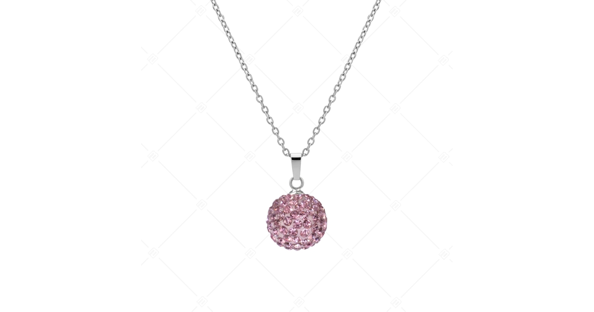 Modischer kugelförmiger Anhänger, verziert mit brillanten tschechischen Kristallen und einer abgeflachten Ankerkette. Medizinischer, antiallergener Edelstahlschmuck 316L, mit Hochglanzpolierung, sicherer Verschluss.