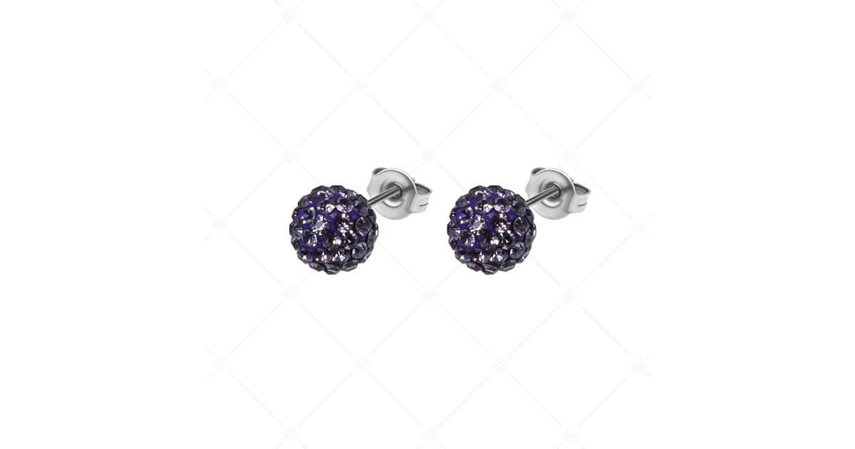 Modische Ohrstecker, verziert mit brillanten tschechischen Kristallen. Sein Kugel Kopf ist mit kleinen Lavendelsteinchen verziert. Medizinischer, antiallergener 316L-Edelstahl Schmuck, hochglanzpoliert, mit sicherem Ohrsteckerverschluss.