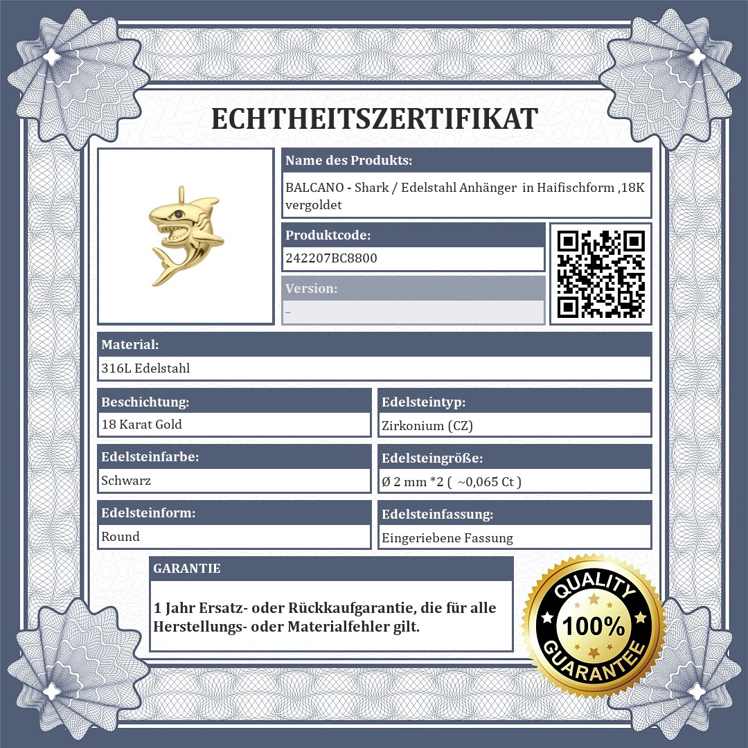 BALCANO - Shark / Edelstahl Anhänger in Haifischform ,18K vergoldet