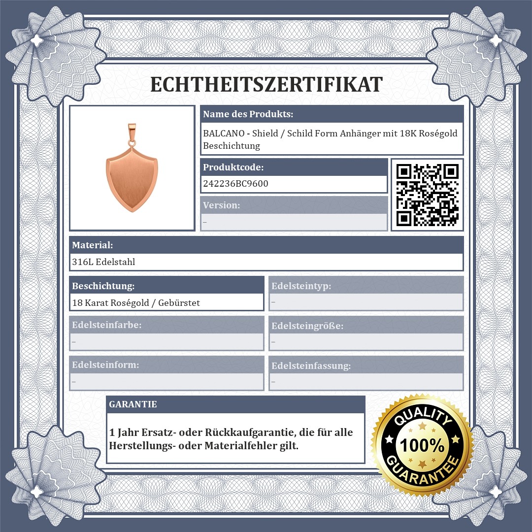 BALCANO - Shield / Schild Form Anhänger mit 18K Roségold Beschichtung