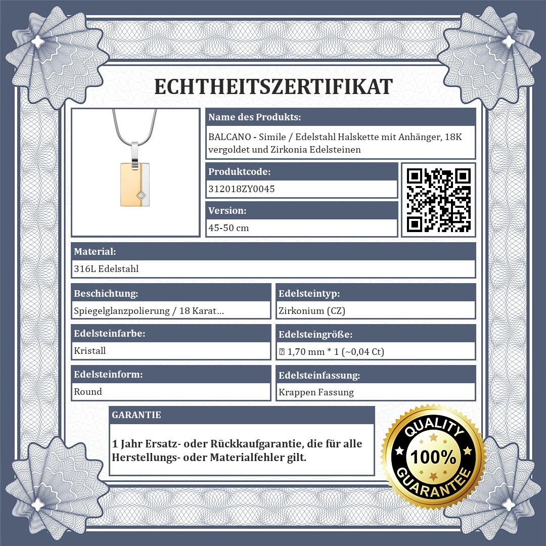 BALCANO - Simile / Edelstahl Halskette mit Anhänger, 18K vergoldet und Zirkonia Edelsteinen