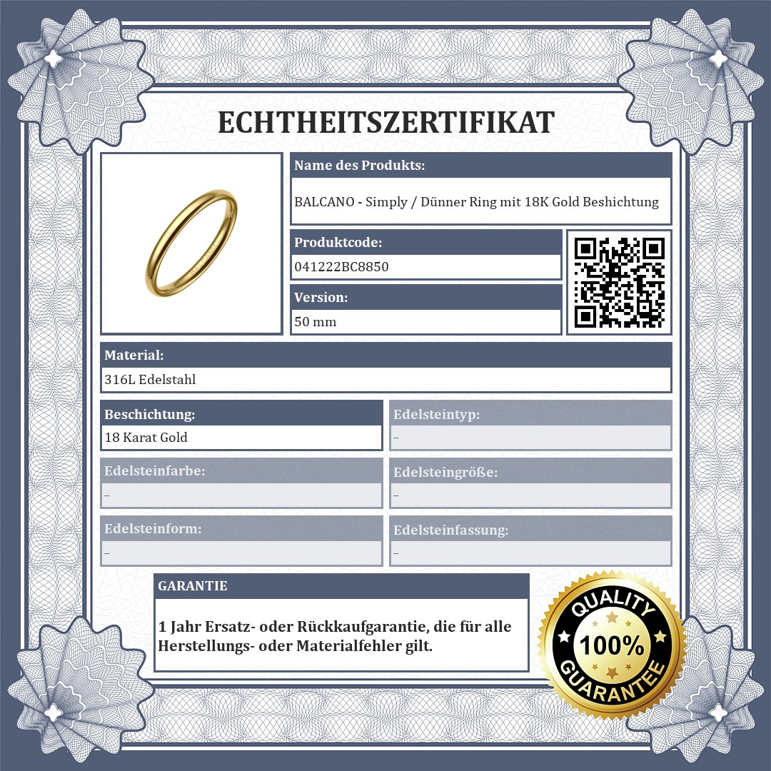 BALCANO - Simply / Dünner Ring mit 18K Gold Beshichtung