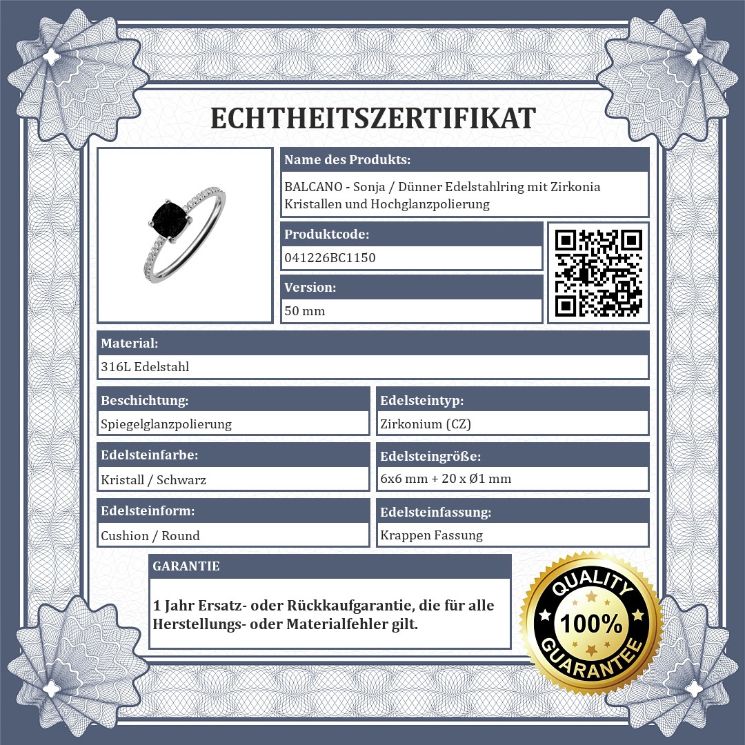 BALCANO - Sonja / Dünner Edelstahlring mit Zirkonia Kristallen und Hochglanzpolierung
