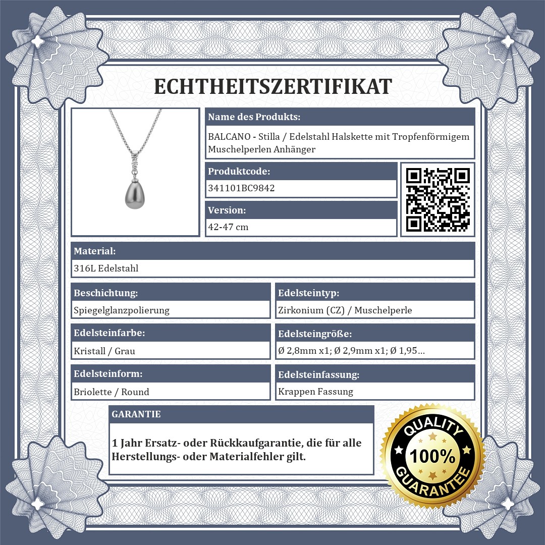 BALCANO - Stilla / Edelstahl Halskette mit Tropfenförmigem Muschelperlen Anhänger