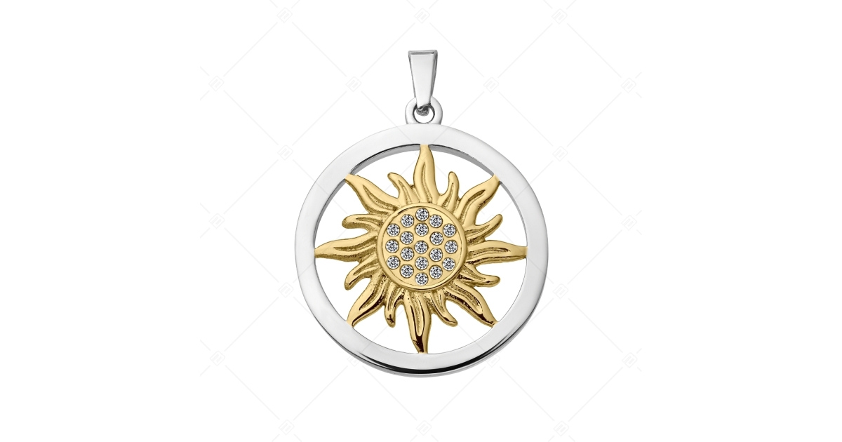BALCANO - Sun / Edelstahl Sonne Anhänger mit Zirkonia Edelsteinen und 18K vergoldet
