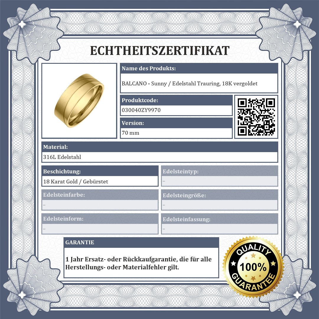 BALCANO - Sunny / Edelstahl Trauring, 18K vergoldet