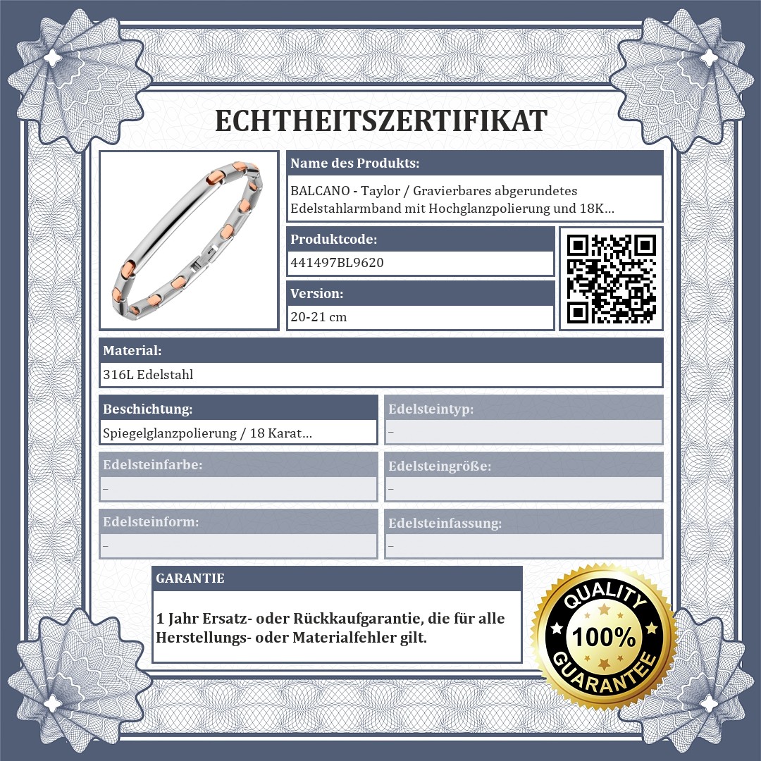 BALCANO - Taylor / Gravierbares abgerundetes Edelstahlarmband mit Hochglanzpolierung und 18K Roségold Beschictung