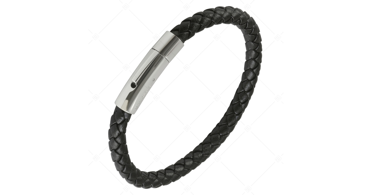 BALCANO - Trenzado / Geflochtenes Leder armband mit zylindrischer Schließe aus Edelstahl