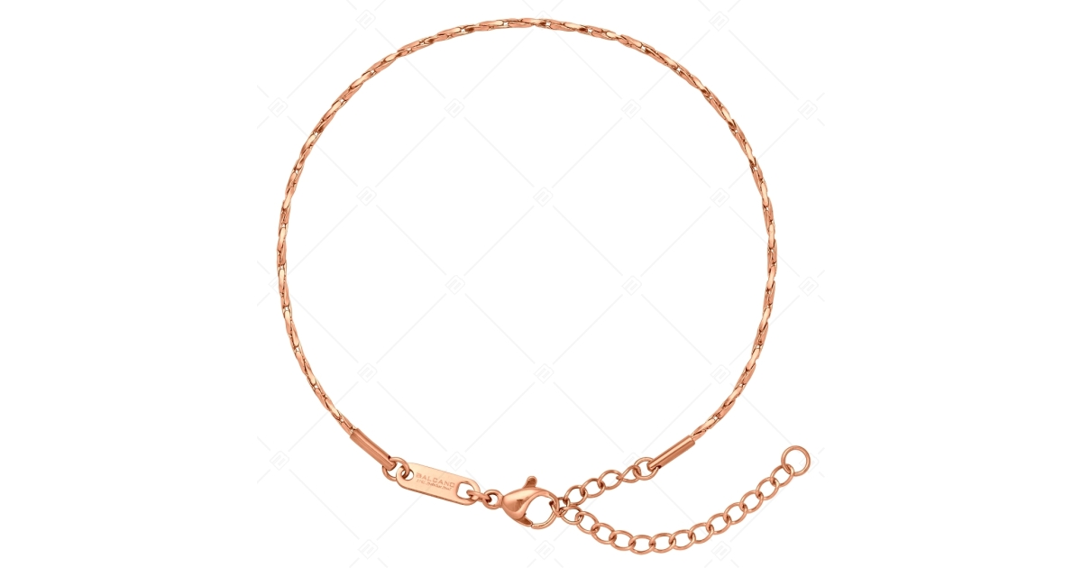 Fußkette aus medizinischem 316L-Edelstahl mit Gedrehter Cobrakette. Besonderes Zubehör mit hochwertiger 18K Roségoldbeschichtung. Dank seines Materials ist es langlebig, nutzt sich nicht ab, mattiert nicht.