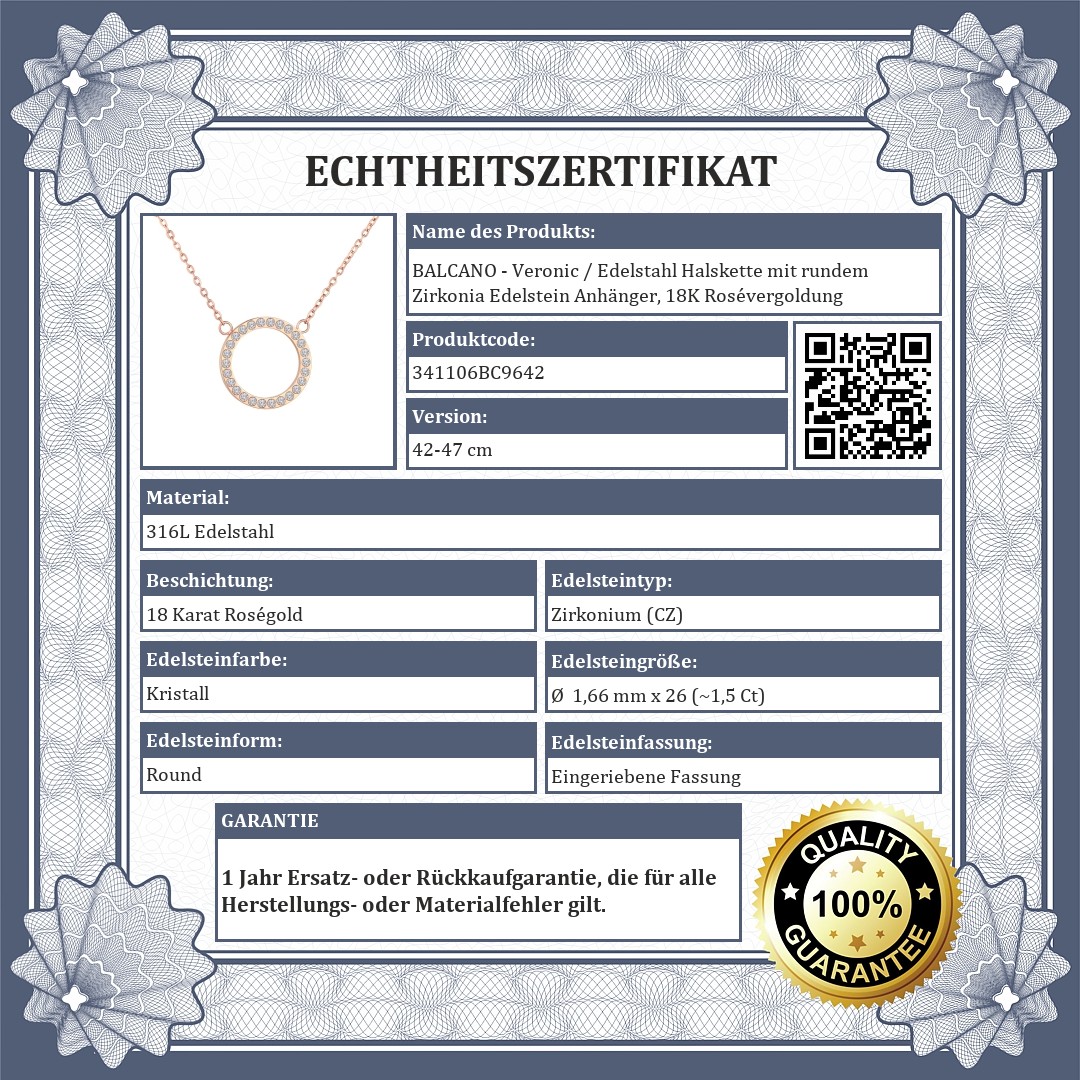 BALCANO - Veronic / Edelstahl Halskette mit rundem Zirkonia Edelstein Anhänger, 18K Rosévergoldung