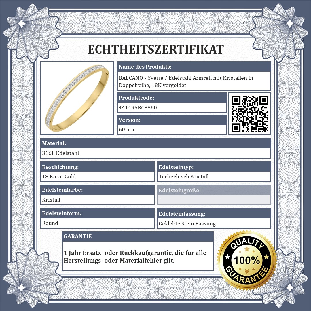 BALCANO - Yvette / Edelstahl Armreif mit Kristallen In Doppelreihe, 18K vergoldet