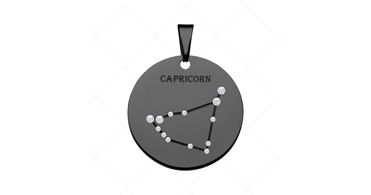 BALCANO - Zodiac / Sternzeichen Anhänger mit Zirkonia Edelsteinen und schwarzer PVD Beschichtung - Steinbock
