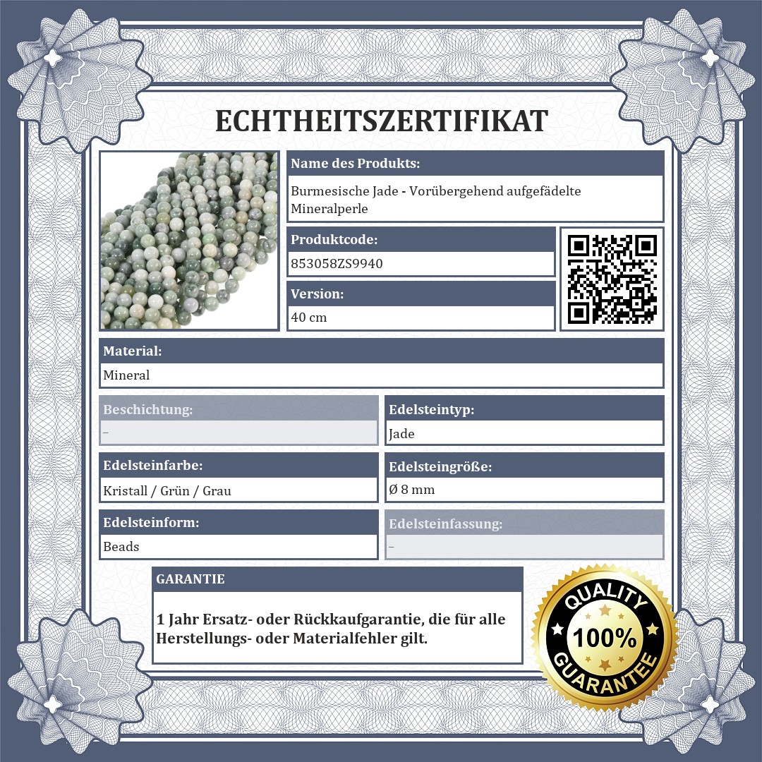 Burmesische Jade - Vorübergehend aufgefädelte Mineralperle