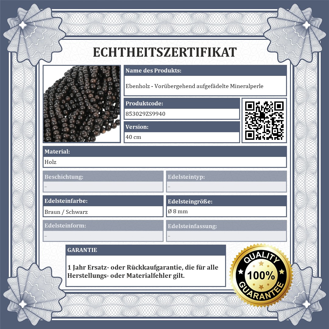 Ebenholz - Vorübergehend aufgefädelte Mineralperle